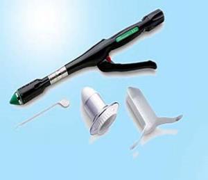 黏膜環切吻合器(qì),一(yī)次性使用(yòng)肛腸吻(縫)合器(qì)手術(shù)是(shì)以環形刀(dāo)将齒狀線上(shàng)方的(de)粘膜及粘$膜下(xià)層環形切除,同時(shí)擊入成圓形排列的(de)兩排互相(xiàng)交錯(cuò)的(de)縫釘将¶切口閉合。應用(yòng)該器(qì)械可(kě)以節省手術(shù)時(shí)間(jiān)、減少(shǎo)病員(yuán)出血、能(néng)更方便地(dì)進行(xíng)手÷術(shù)縫合。本器(qì)械有(yǒu)三種規格32mm、34mm、36mm以适應不(bù)同組織。