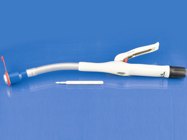 一(yī)次性使用(yòng)彎管縫合器(qì)是(shì)在組織、器(qì)官上(shàng)擊入成圓形排列的(de)兩♠排互相(xiàng)交錯(cuò)的(de)縫釘,并同時(shí)以環形刀(dāo)将其內(nèi)側的(de)組織切斷。應用(y òng)該器(qì)械可(kě)以節省手術(shù)時(shí)間(jiān)、減少(shǎo)病員(yuán)出血、能(néng)更方便地(dì)進行(xíng)手術(sh©ù)縫合。本器(qì)械有(yǒu)六種規格以适應不(bù)同組織。